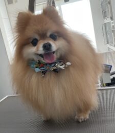オゾンマイクロナノバブル浴の鋏仕上げのポメカットをご利用のポメラニアンのぷーくんです…