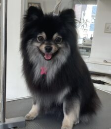 2ヶ月毎にオゾンマイクロナノバブル浴+炭酸泉浴の鋏仕上げのカットコースをご利用のポメラニアンのヴィヴィちゃんです…
