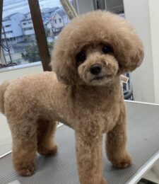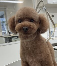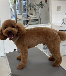 ヶ月毎にカットコースをご利用のトイプードルのマロンちゃんは、体3㎜ショートマッシュ四肢細くのご注文です …