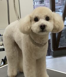 毎月オゾンマイクロナノバブル浴+炭酸泉浴のカットコースをご利用のトイプードルのジュノンくんは、体10㎜テディベアのご注文です …