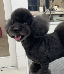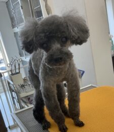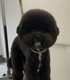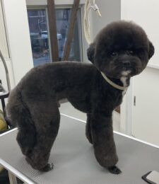 毎月オゾンマイクロナノバブル浴+炭酸泉浴をご利用のT・プードルの銀時くん、体5㎜大きく丸くビションのお顔、四肢細く足先バリカンの注…