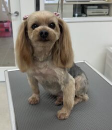 毎月カットコースをご利用のヨーキーのごえもんくんは、体3㎜四肢細くお顔は丸くお耳は揃えます …