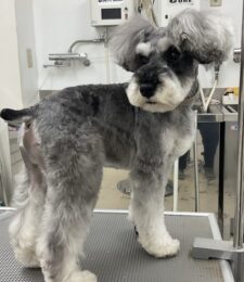 ⒈5ヶ月毎にカットコースをご利用のミニチュアシュナウザーのエルフィくんは、体2㎜シュナカットのご注文です …