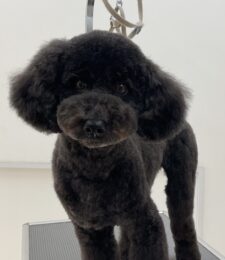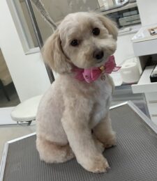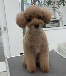 T・プードルのラズリちゃんは体3㎜顔バリ、四肢細く、耳なり丸くのカットコースをご利用です…