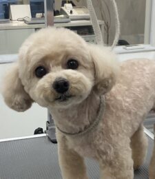 2ヶ月毎にオゾンマイクロナノバブル浴のカットコースをご利用のミックス犬(トイプードル×マルチーズ)の麦ちゃんは、体5㎜のテディベア…