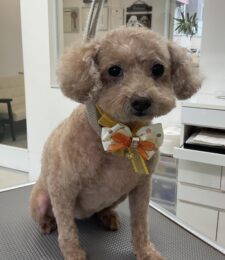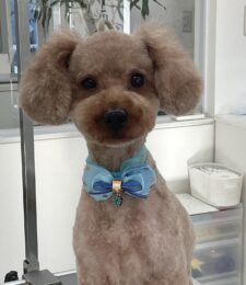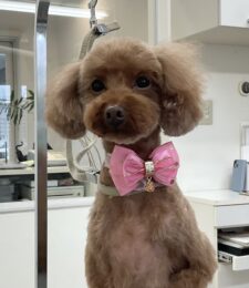 2ヶ月毎にオゾンマイクロナノバブル浴+炭酸泉浴のカットコースをご利用のトイプードルのテコくんは,体5㎜全バリお顔も短くテディベア尾…
