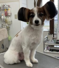 毎月カットコース+歯磨きをご利用のミックス犬(パピヨン×トイプードル)のルーくんは、体8㎜お尻桃尻のご注文です …