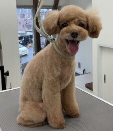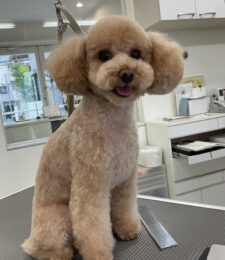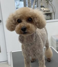 2ヶ月毎にマイクロナノバブル浴カットコース+歯磨きをご利用のトイプードルのシンバくんは、体3㎜マイアミ足先バリカンお顔はテディベア…
