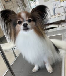 2ヶ月毎に炭酸泉浴+トリートメントのシャンプーコースをご利用のパピヨンのトニーくんです …
