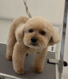 毎月オゾンマイクロナノバブル浴+歯磨きのカットコースをご利用のトイプードルのなぎくんは、体5㎜テディベア四肢細くのご注文です …