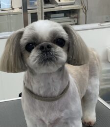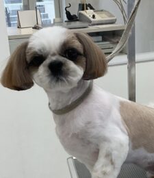 2ヶ月毎にオゾンマイクロナノバブル浴+炭酸泉浴+歯磨きのカットコースをご利用のシーズーのゆずちゃんは、体2㎜ 四肢細く お顔も短く…