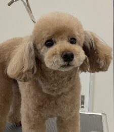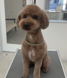2ヶ月毎にオゾンマイクロナノバブル浴+歯磨きのカットコースをご利用のトイプードルのチョコくんは、体5㎜全バリお顔も短くテディベアの…