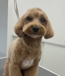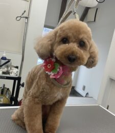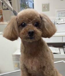 カットコース+炭酸泉浴をご利用のトイプードルのベルちゃんは,体5㎜テディベア四肢細くのご注文です …