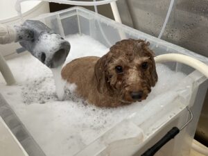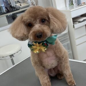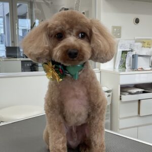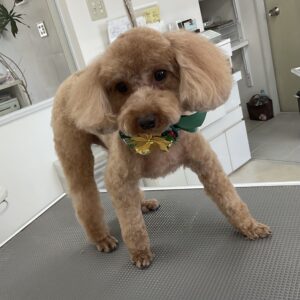 毎月オゾンマイクロナノバブル浴のカットコースをご利用のトイプードルのあいくんは、体5㎜テディベア足先3㎜順お耳も短く丸くのご注文です