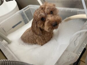 ⒈5ヶ月毎にオゾンマイクロナノバブル浴のカットコースをご利用のトイプードルのあいくんは、体8㎜テディベア四肢細く足先短くのご注文です
