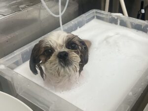 2ヶ月毎にオゾンマイクロナノバブル浴+炭酸泉浴のカットコースをご利用のシーズーのあんずちゃんは、体2㎜ 四肢細く お顔も短く丸くのご注文です。