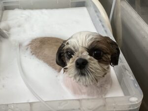 2ヶ月毎にオゾンマイクロナノバブル浴+炭酸泉浴のカットコースをご利用のシーズーのあんずちゃんは、体2㎜ 四肢細く お顔も短く丸くのご注文です。
