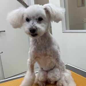 1.5ヶ月毎にオゾンマイクロナノバブル浴のカットコースをご利用の後肢麻痺のT・プードルのあーすくんは、体3㎜のマイアミ(ブレスはブーツに)目、鼻の上、輪郭短くテディベアのご注文です。