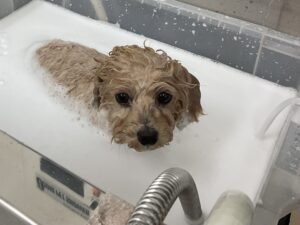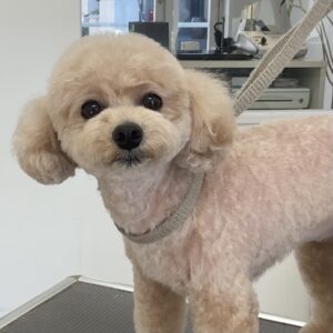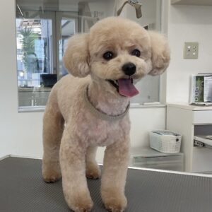 毎月オゾンマイクロナノバブル浴+炭酸泉浴+歯磨きのカットコースをご利用のトイプードルのうららちゃんは、体3㎜テディベア大きく丸く四肢太くのご注文です