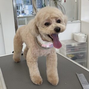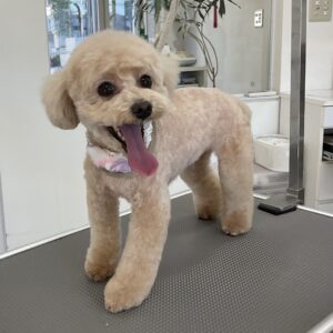 毎月オゾンマイクロナノバブル浴+炭酸泉浴+歯磨きのカットコースをご利用のトイプードルのうららちゃんは、体3㎜テディベア大きく丸く四肢太くのご注文です