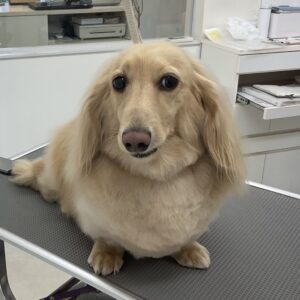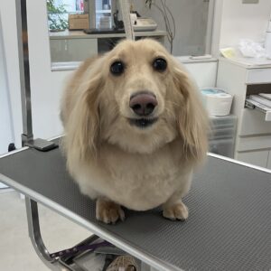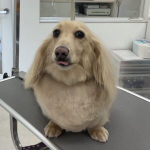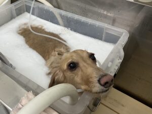 毎月オゾンマイクロナノバブル浴+炭酸泉浴のシャンプーコースをご利用のミニチュアダックスのえんくんです
