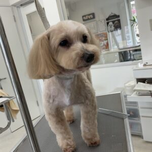 2ヶ月毎にカットコースをご利用のミックス犬(トイプードル×マルチーズ)のくうくんは、体3㎜テディベア四肢細くのご注文です