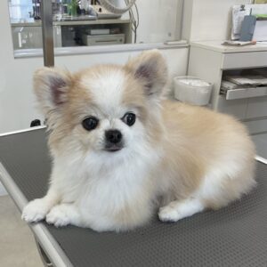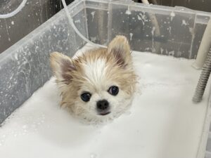 オゾンマイクロナノバブル浴のシャンプーコースをご利用のミックス犬(パピヨン×チワワ)のくるみちゃんです