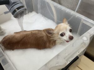 オゾンマイクロナノバブル浴のシャンプーコースをご利用のチワワのくるみちゃんです