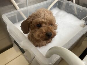 ⒈5ヶ月毎にオゾンマイクロナノバブル浴のシャンプーコースをご利用のトイプードルのこえだちゃんです