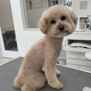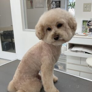 毎月カットコースをご利用のトイプードルのここちゃんは、体3㎜のアフロ四肢細くのご注文です