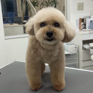 2ヶ月毎にオゾンマイクロナノバブル浴+歯磨きのカットコースをご利用のトイプードルのここちゃんは、体8㎜テディベア四肢太くのご注文です