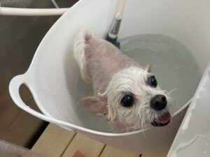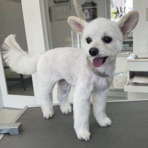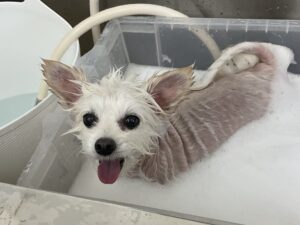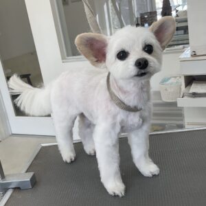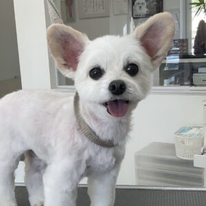 毎月オゾンマイクロナノバブル浴+炭酸泉浴カットコースをご利用のミックス犬(トイプードル×チワワ)のこつきちゃんは、体5㎜四肢細くお顔も短く丸くのご注文です