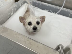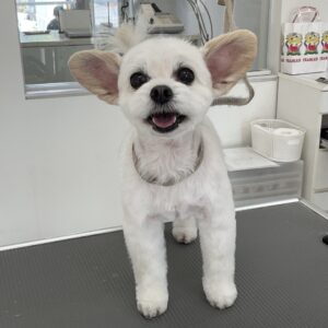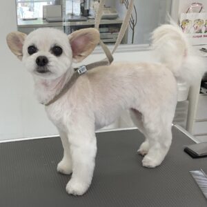 毎月オゾンマイクロナノバブル浴+炭酸泉浴カットコースをご利用のミックス犬(トイプードル×チワワ)のこつきちゃんは、体5㎜四肢細くお顔も短く丸くのご注文です