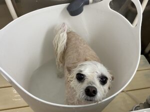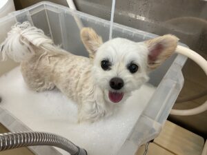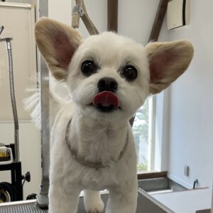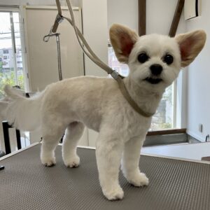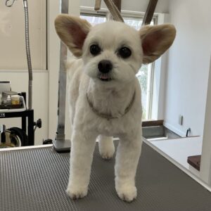 毎月オゾンマイクロナノバブル浴+炭酸泉浴カットコースをご利用のミックス犬(トイプードル×チワワ)のこつきちゃんは、体5㎜四肢細くお顔も短く丸くのご注文です