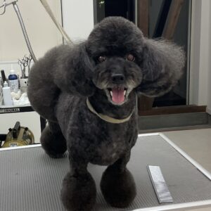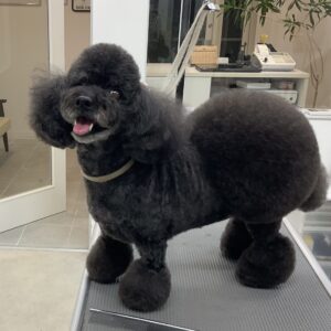 毎月カットコースをご利用のトイプードルのこむぎちゃんは、体3㎜おぱんつカットお顔は3㎜ムスタッシュ丸く四肢はブレスを作ります。