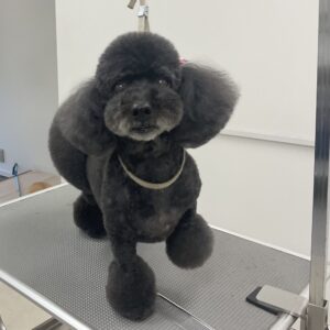 毎月カットコースをご利用のトイプードルのこむぎちゃんは、体3㎜おぱんつカットお顔は3㎜ムスタッシュ丸く四肢はブレスを作ります。