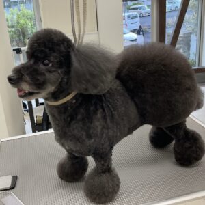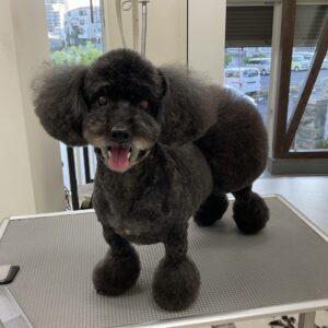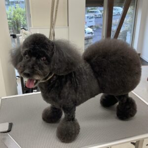 毎月カットコースをご利用のトイプードルのこむぎちゃんは、体3㎜おぱんつカットお顔は3㎜ムスタッシュ丸く四肢はブレスを作ります。