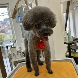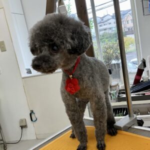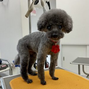 2ヶ月毎にカットコースをご利用のトイプードルの18歳こゆきちゃんは、体5㎜足先バリカンム四肢細くお顔はショートマッシュのご注文です