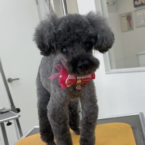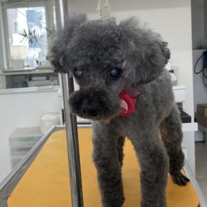 2ヶ月毎にカットコースをご利用のトイプードルのこゆきちゃんは、体5㎜足先バリカン四肢細くお顔はテディベアのご注文です