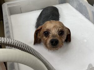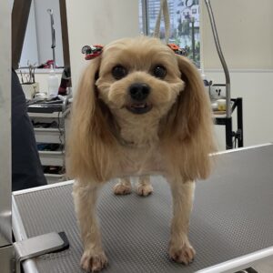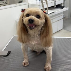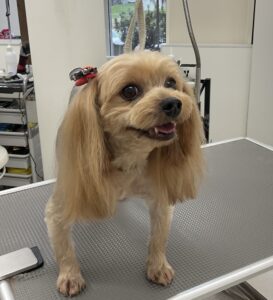 毎月カットコースをご利用のヨーキーのごえもんくんは、体3㎜四肢細くお顔は丸くお耳は揃えます