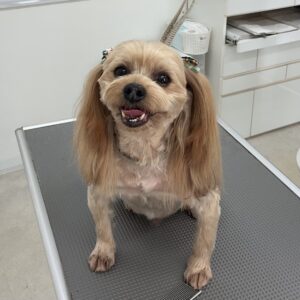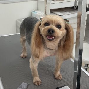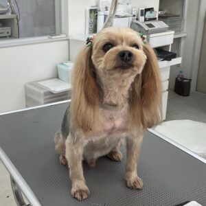 毎月カットコースをご利用のヨーキーのごえもんくんは、体3㎜四肢細くお顔は丸くお耳は揃えます