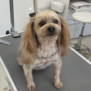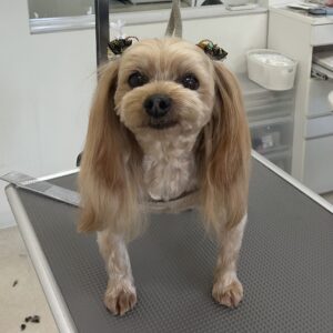 毎月カットコースをご利用のヨーキーのごえもんくんは、体3㎜四肢細くお顔は丸くお耳は揃えます