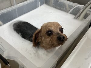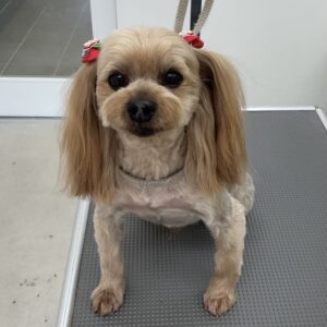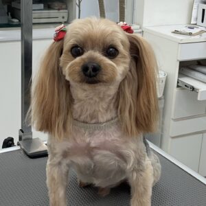 毎月カットコースをご利用のヨーキーのごえもんくんは、体3㎜四肢細くお顔は丸くお耳は揃えます