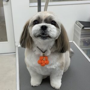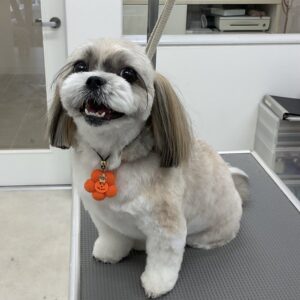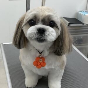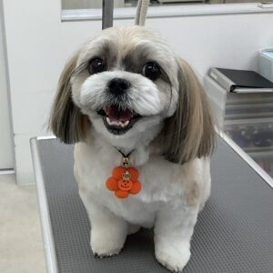 毎月カットコースをご利用のミックス犬(マルチーズ×シーズー)のさくらちゃんは、体1㎝残しの鋏仕上げお顔も短く丸くのご注文です