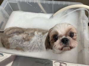 毎月オゾンマイクロナノバブル浴+炭酸泉浴のカットコースをご利用のシーズーのさくらちゃんは、体5㎜お顔は丸くのご注文です