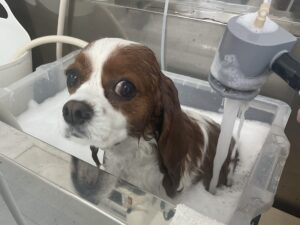 ⒈5ヶ月毎にオゾンマイクロナノバブル浴+炭酸泉浴のシャンプーコースをご利用のキャバリアのすずちゃんです