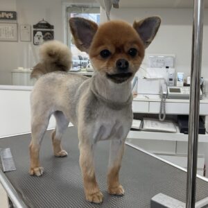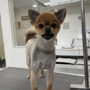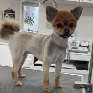 2ヶ月毎カットコースをご利用のミックス犬(ポメラニアン×チワワ)のつくねちゃんは、体3㎜スムースカットのご注文です