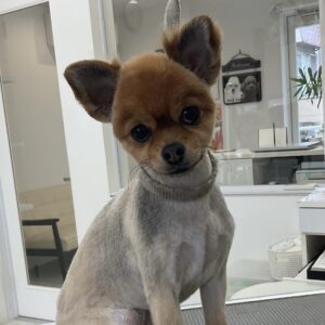 2ヶ月毎カットコースをご利用のミックス犬(ポメラニアン×チワワ)のつくねちゃんは、体3㎜スムースカットのご注文です