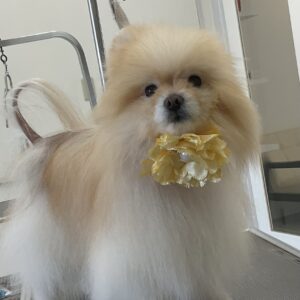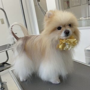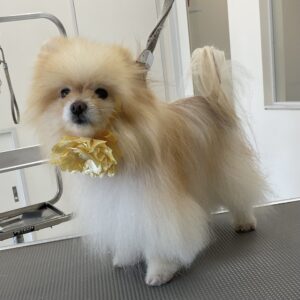 炭酸泉浴のシャンプーコースをご利用のポメラニアンのてりーくんです