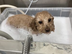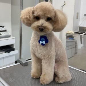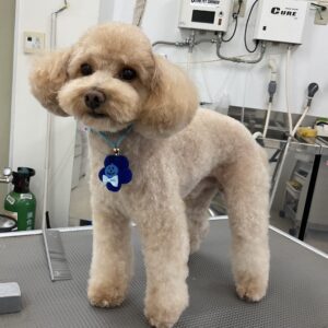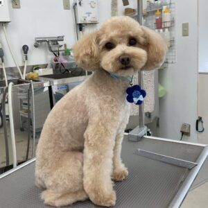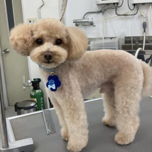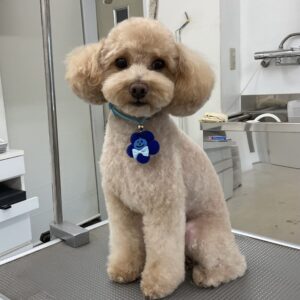 毎月オゾンマイクロナノバブル浴のカットコースをご利用のトイプードルのなぎくんは、体5㎜テディベア四肢細くのご注文です